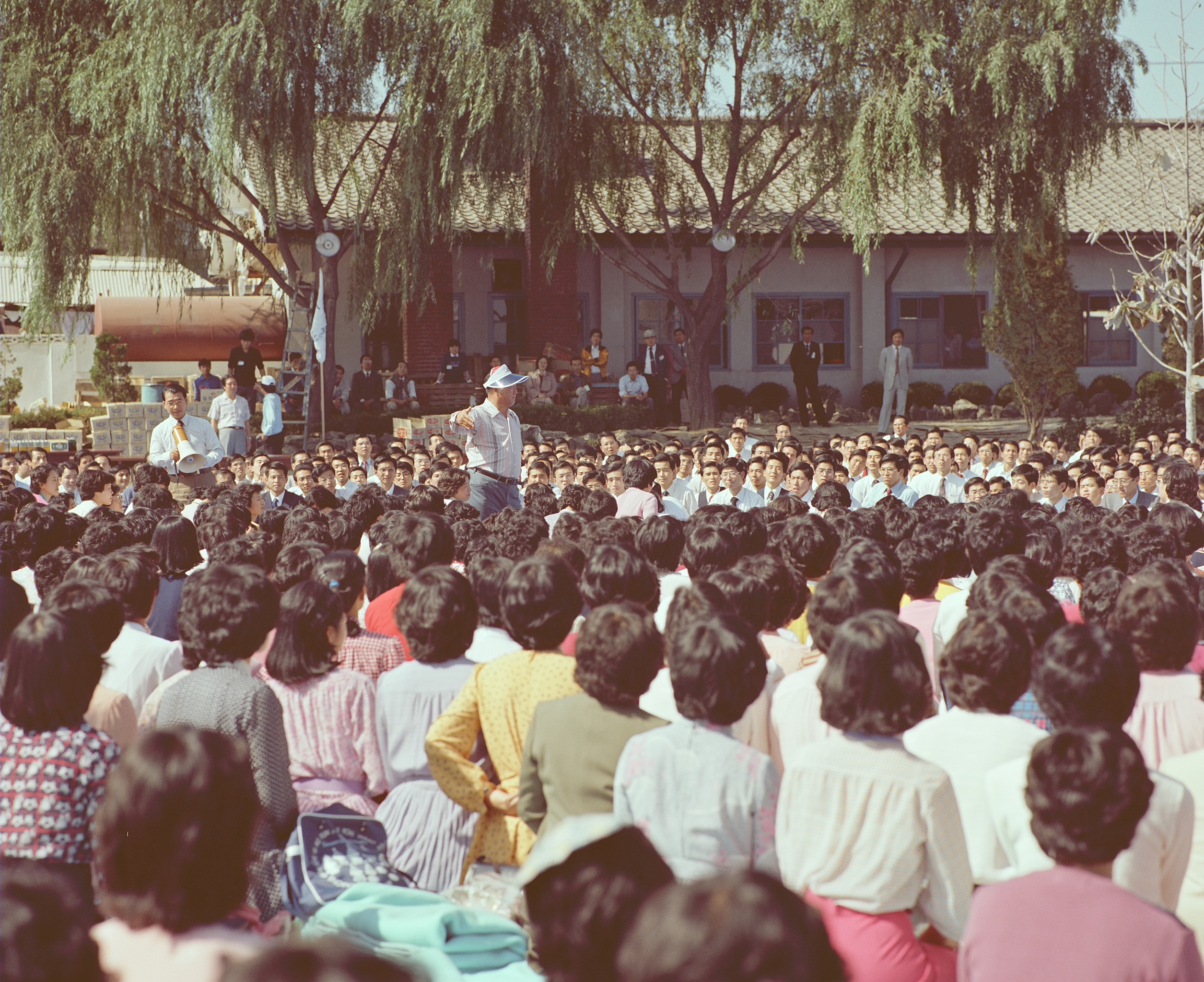マッチングをされる真のお父様(1982年10月、韓国・中央修練院)