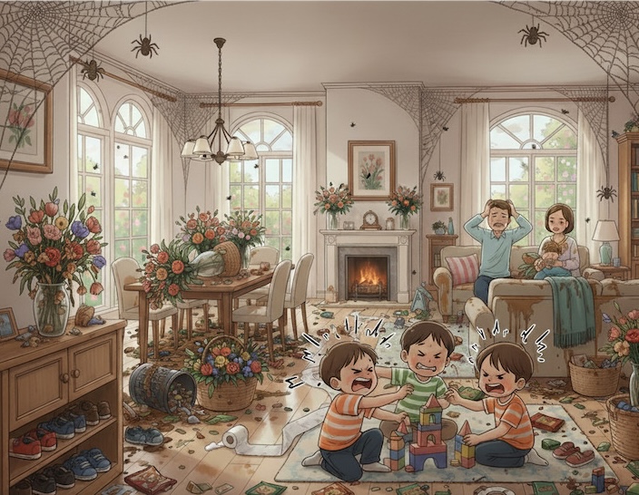 ・靴がぐちゃぐちゃ ・ケンカをしている ・虫がいる ・花が枯れている