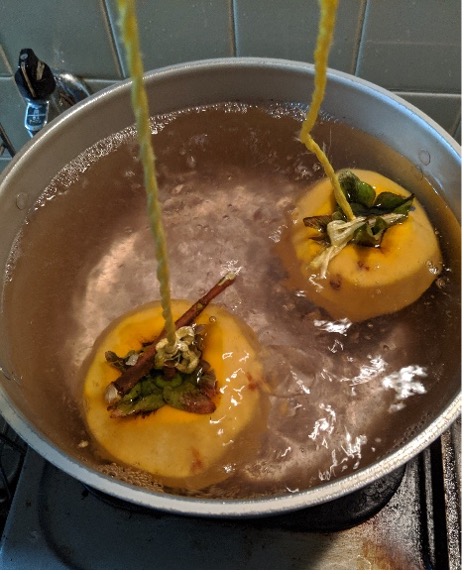 一応、高所作業になりますので安全第一。私が外で作業する様子を、妻が窓から見守ってくれています。今年はリンゴくらいの大きさにまで立派に成長しました。