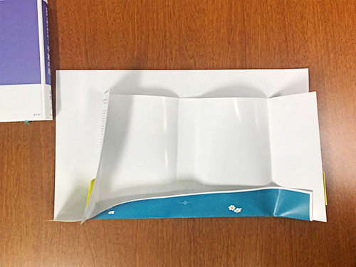 ④余っている白紙の部分を、しおりの内側にくるように折り込みます。
