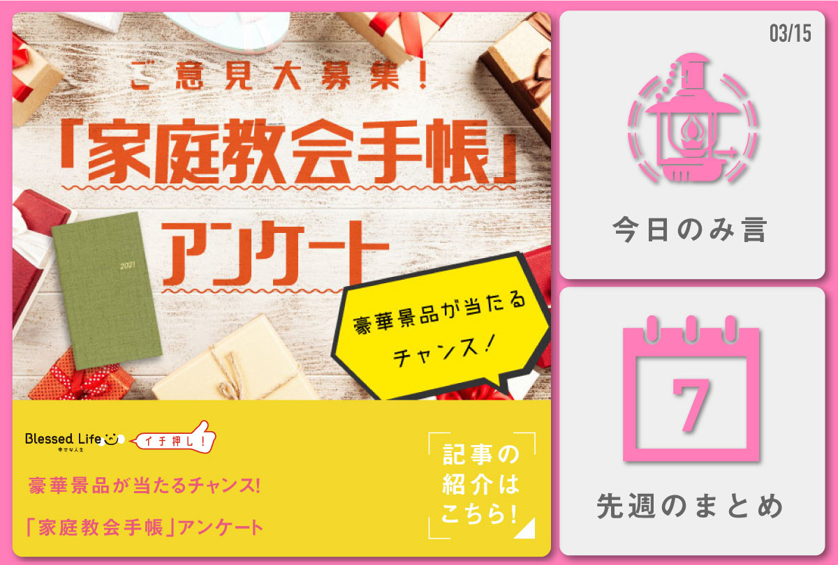 毎週このルーティーンでお送りしていますが、その他に「今日のみ言枠(右上)」や「オススメ枠(右下)」も更新されています。