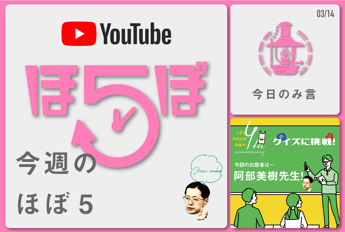 メイン枠は「ほぼ5シリーズ」です。その週の金曜日に配信した「ほぼ5シリーズ」をお送りしています。こちらの画像はYouTubeのほぼ5シリーズにリンクされていますので、画像をタップすればどなたでもご視聴いただけます。
