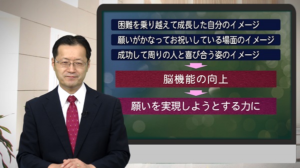 すると、幸せホルモンであるドーパミンが分泌されはじめ、モチベーションが徐々に上がってきて、脳の機能も高まり、願いを実現しようとする力を後押しします。