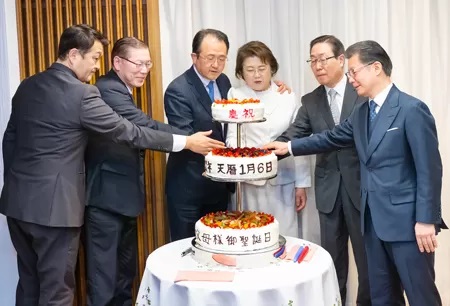 1月27日、東京・渋谷の松濤本部で、真の父母様ご聖誕日の敬礼記念式が挙行されました。会長団をはじめ本部職員、元老食口、南東京教区の代表者など、約70人が集い、真のお父様103歳、真のお母様80歳のご聖誕日を祝賀しました。