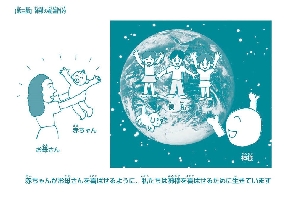 神様は万物世界を創造されたのち、最後にご自分の似姿としての喜怒哀楽をもつ人間を創造され、その人間を見て楽しもうとされました。それは、お母さんが赤ちゃんの笑顔を通して一番うれしくなるのと同じなのです。