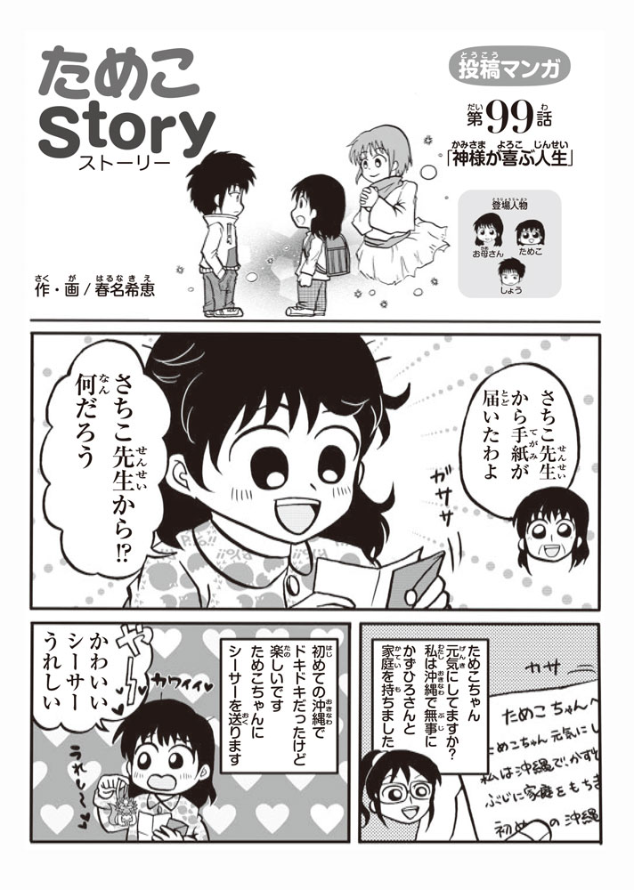 『ムーンワールド』連載の人気マンガ「ためこStory」。Blessed Lifeでこれまで未掲載のストーリーを順番にお届けします。 小学6年生の「ためこ」が学校や教会の日常生活で神様の愛と心情に出会っていく、笑いあり、涙ありのハートフルストーリーです。