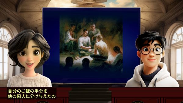 死人の口から食べ物を奪うような修羅場の中においても、自分のご飯の半分を他の囚人に分け与えたの。
