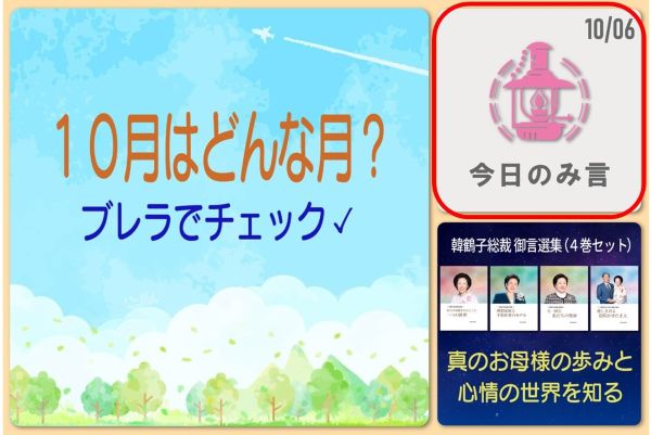 毎朝5時、ブレラ(Blessed Life)では「幸運の言葉」と「一日の出発をみ言と共に!」のシリーズタイトルで配信し、光言社LINE公式アカウントでは、光言社の書籍の紹介として『真のお母様のみ言 御旨の道』を配信してきました。