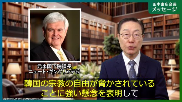 「田中富広会長メッセージ」は、家庭連合会員サポートアプリおよび光言社U-ONE TVで配信されます。