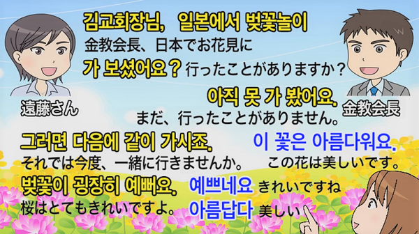 「この花は美しいです」であれば「이 꽃은 아름다워요(イ コチュン アルムダウォヨ)」となります。
