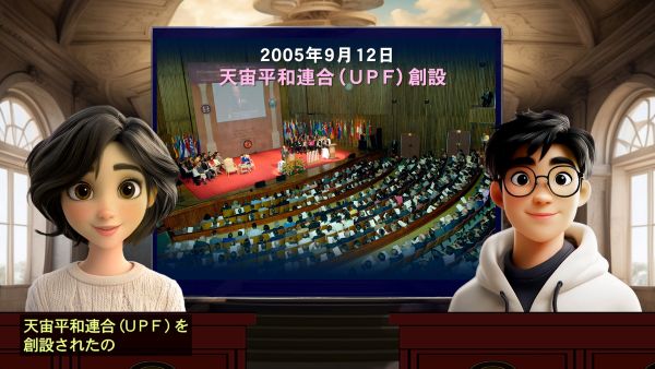 2005年9月12日、文鮮明先生が85歳の時、文先生ご夫妻は天宙平和連合(UPF)を創設されたの。