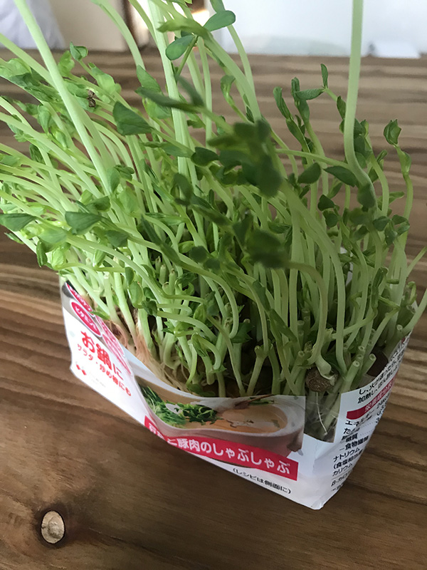 豆苗は、一度食べた後、また、ぐんぐん伸びるしね。